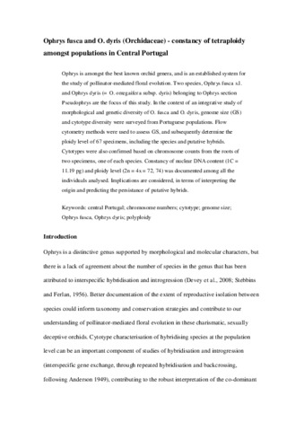 Ophrys fusca and Ophrys dyris (Orchidaceae) – constancy of tetraploidy amongst populations in Central Portugal.