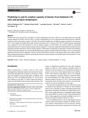 Predicting Cu and Zn sorption capacity of biochar from feedstock C/N ratio and pyrolysis temperature.