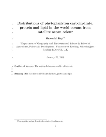 Distributions of phytoplankton carbohydrate, protein and lipid in the world oceans from satellite ocean colour.