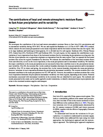 The contributions of local and remote atmospheric moisture fluxes to East Asian precipitation and its variability.