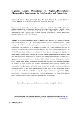 Sequence length dependence in arginine/phenylalanine oligopeptides: Implications for self-assembly and cytotoxicity.
