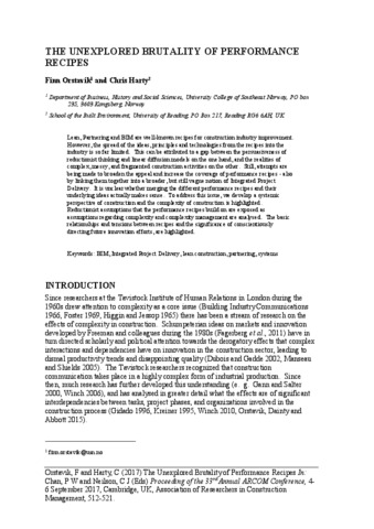 Orstavik, F. and Harty, C. (2017) The unexplored brutality of performance recipes. In: ARCOM 2017, 4-6 Sep 2017, Cambridge, pp. 512-521.