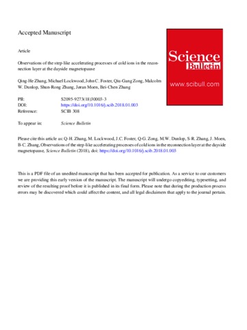 Observations of the step-like accelerating processes of cold ions in the reconnection layer at the dayside magnetopause.