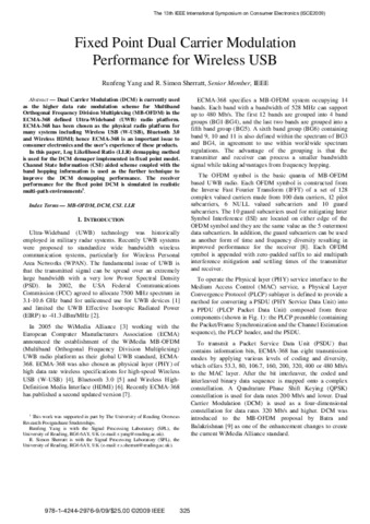 Yang, R. and Sherratt, R. S. orcid id iconORCID: https://orcid.org/0000-0001-7899-4445 (2009) Fixed point dual carrier modulation performance for wireless USB. In: IEEE International Symposium on Consumer Electronics, June 2009, Kyoto, Japan, pp. 235-238.