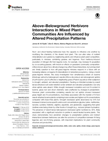 Above–belowground herbivore interactions in mixed plant communities are influenced by altered precipitation patterns.
