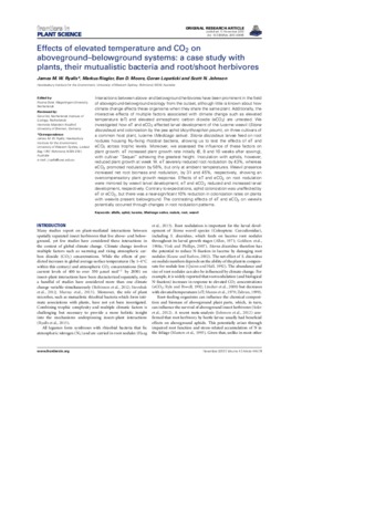 Effects of elevated temperature and CO2 on aboveground-belowground systems: a case study with plants, their mutualistic bacteria and root/shoot herbivores.