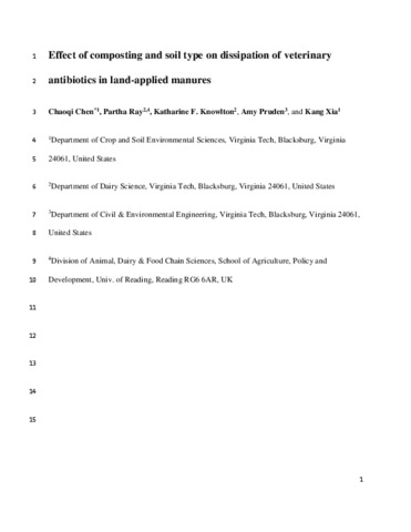 Effect of composting and soil type on dissipation of veterinary antibiotics in land-applied manures.