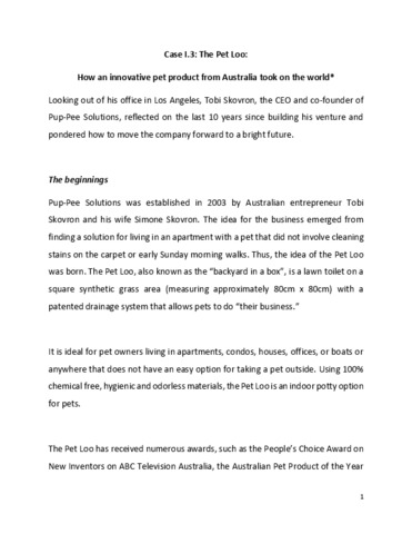 Gerschewski, S. (2017) The Pet Loo: how an innovative pet product from Australia took on the world. In: Johansson, J. K. and Furick, M. T. (eds.) The new global marketing: local adaptation for sustainability and profit. Cognella, San Diego, USA, pp. 80-84. ISBN 9781516504671