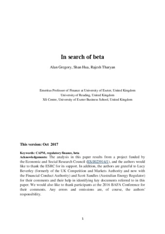 Gregory, A., Hua, S. and Tharyan, R. (2018) In search of beta. The British Accounting Review, 50 (4). pp. 425-441. ISSN 0890-8389 doi: 10.1016/j.bar.2017.12.002