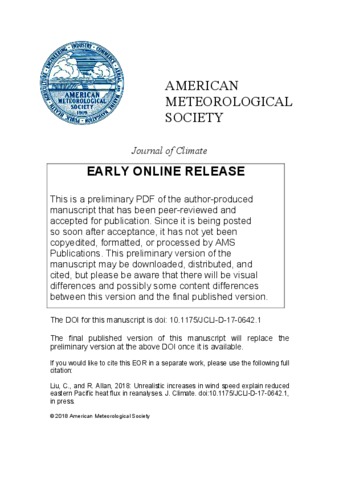 Unrealistic increases in wind speed explain reduced eastern Pacific heat flux in reanalyses.