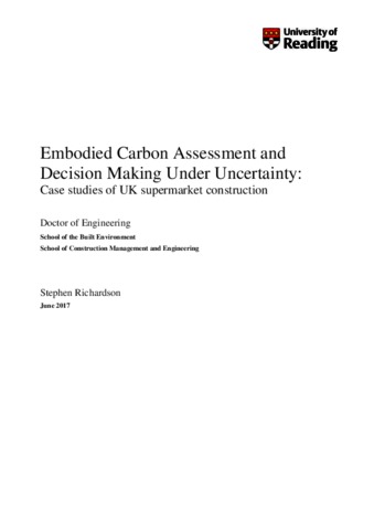 Richardson, S. (2017) Embodied carbon assessment and decision making under uncertainty: case studies of UK supermarket construction. EngD thesis, University of Reading.