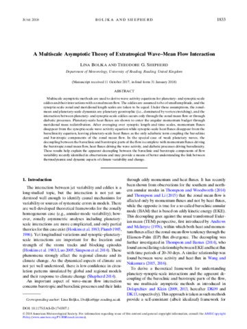 Boljka, L. and Shepherd, T. G. orcid id iconORCID: https://orcid.org/0000-0002-6631-9968 (2018) A multiscale asymptotic theory of extratropical wave–mean flow interaction. Journal of the Atmospheric Sciences, 75 (6). pp. 1833-1852. ISSN 1520-0469 doi: 10.1175/jas-d-17-0307.1