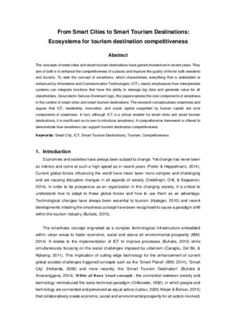 Boes, K., Buhalis, D. and Inversini, A. (2016) Smart tourism destinations: ecosystems for tourism destination competitiveness. International Journal of Tourism Cities, 2 (2). pp. 108-124. ISSN 2056-5607 doi: 10.1108/IJTC-12-2015-0032