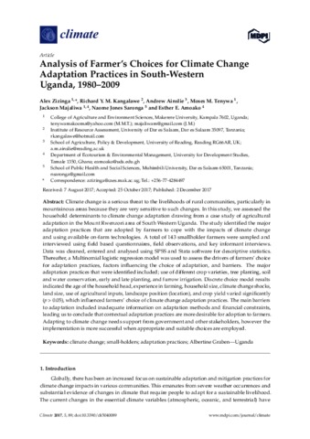 Analysis of farmer’s choices for climate change adaptation practices in South-Western Uganda, 1980–2009.