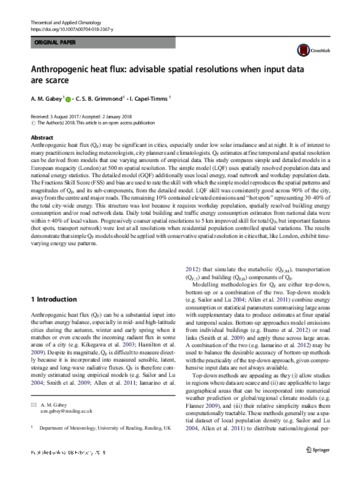 Anthropogenic heat flux: advisable spatial resolutions when input data are scarce.