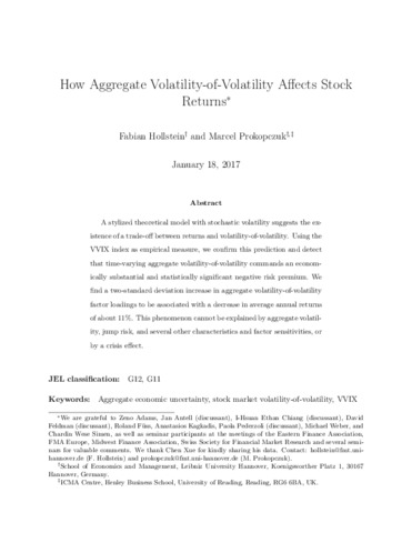 Hollstein, F. and Prokopczuk, M. (2018) How aggregate volatility-of-volatility affects stock returns. The Review of Asset Pricing Studies, 8 (2). pp. 253-292. ISSN 2045-9939 doi: 10.1093/rapstu/rax019