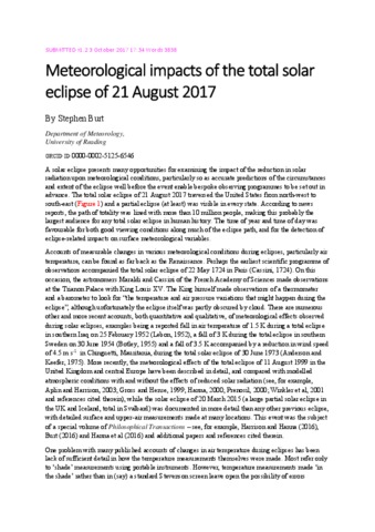 Meteorological impacts of the total solar eclipse of 21 August 2017.