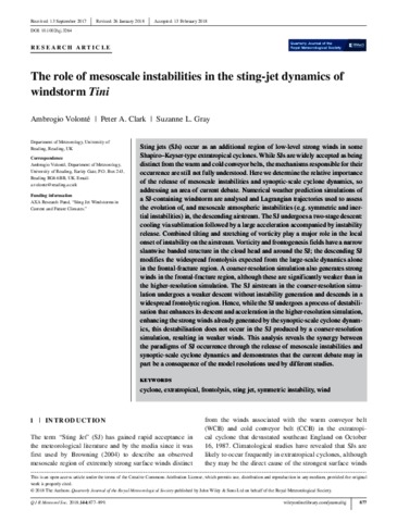 The role of mesoscale instabilities in the sting-jet dynamics of windstorm Tini.