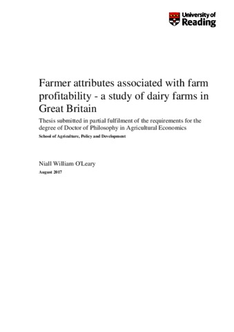 O'Leary, N. (2017) Farmer attributes associated with farm profitability - a study of dairy farms in Great Britain. PhD thesis, University of Reading.