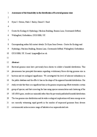 Assessment of the bimodality in the distribution of bacterial genome sizes.