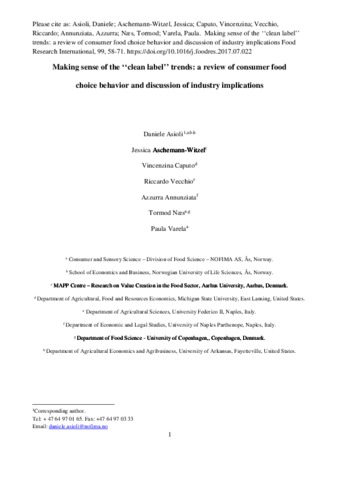 ORCID: https://orcid.org/0000-0003-2274-8450, Aschemann-Witzel, J., Caputo, V., Vecchio, R., Annunziata, A., Naes, T. and Varela, P.