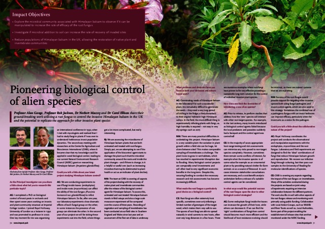 Gange, A., Jackson, R., Maczey, N. and Ellison, C. (2017) Pioneering biological control of alien species. Impact, 2017 (11). pp. 70-72. ISSN 2048-416X doi: 10.21820/23987073.2017.11.70