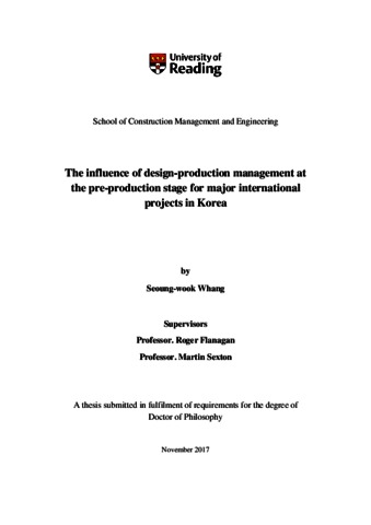 Whang, S.-w. (2017) The influence of design-production management at the pre-production stage for major international projects in Korea. PhD thesis, University of Reading.