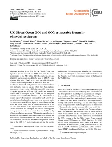 Storkey, D., Blaker, A. T., Mathiot, P., Megann, A., Aksenov, Y., Blockley, E. W., Calvert, D., Graham, T., Hewitt, H. T., Hyder, P., Kuhlbrodt, T. orcid id iconORCID: https://orcid.org/0000-0003-2328-6729, Rae, J. G. L. and Sinha, B. (2018) UK Global Ocean GO6 and GO7: a traceable hierarchy of model resolutions. Geoscientific Model Development, 11 (8). pp. 3187-3213. ISSN 1991-9603 doi: 10.5194/gmd-11-3187-2018