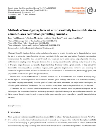 Methods of investigating forecast error sensitivity to ensemble size in a limited-area convection-permitting ensemble.