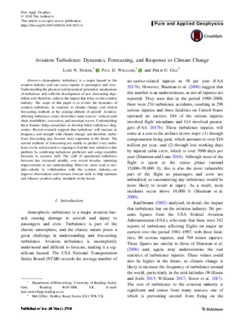 Aviation turbulence: dynamics, forecasting, and response to climate change.