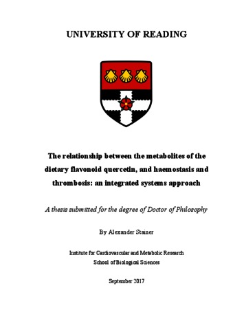 Stainer, A. (2018) The relationship between the metabolites of the dietary flavonoid quercetin, and haemostasis and thrombosis: an integrated systems approach. PhD thesis, University of Reading.