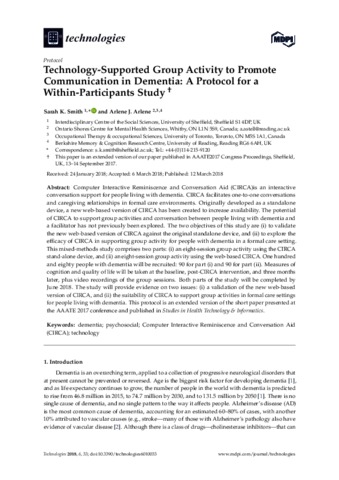 Technology-supported group activity to promote communication in dementia : a protocol for a within-participants study.