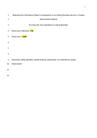 Reducing non-attendance rates for assessment at an eating disorders service: a quality improvement initiative.