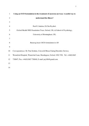 Using an OCD formulation in the treatment of anorexia nervosa: a useful way to understand the illness?