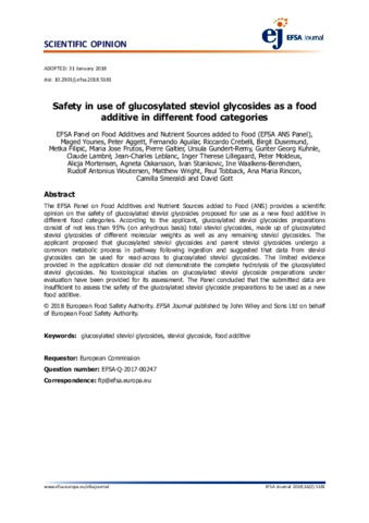 Safety in use of glucosylated steviol glycosides as a food additive in different food categories.