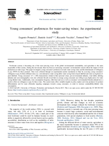 Uncontrolled Keywords wine, water saving label, young consumers, Italy, experimental auctions, willingness to pay, environmental attitude