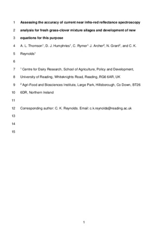 Assessing the accuracy of current near infra-red reflectance spectroscopy analysis for fresh grass-clover mixture silages and development of new equations for this purpose.