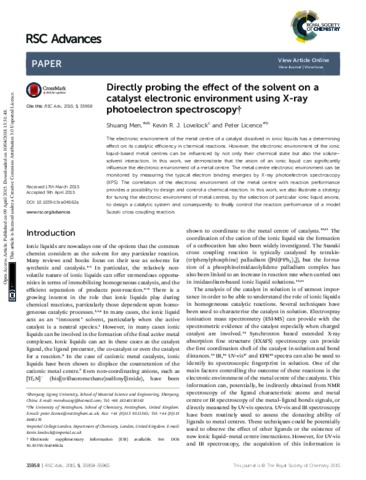 Directly probing the effect of the solvent on a catalyst electronic environment using X-ray photoelectron spectroscopy.