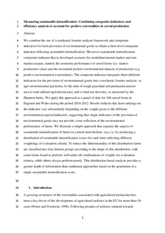 Measuring sustainable intensification: combining composite indicators and efficiency analysis to account for positive externalities in cereal production.