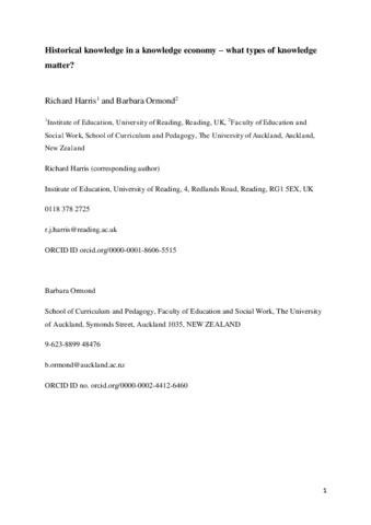 Ormond, B.M. 2018. “Conceptions of knowledge in history teaching”. In Knowledge, Curriculum and Equity - Social Realist Perspectives, edited by B. Barrett, U. Hoadley & J. Morgan, 102-116. London: Routledge.