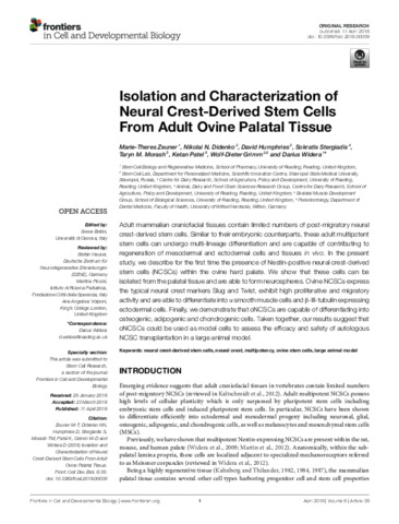 Isolation and characterisation of neural crest-derived stem cells from adult ovine palatal tissue.
