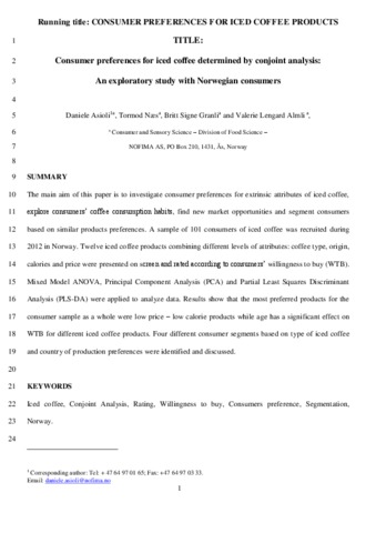 Consumer preferences for iced coffee determined by conjoint analysis: an exploratory study with Norwegian consumers.