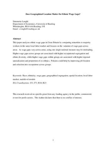 This paper analyzes ethnic wage gaps in Great Britain by comparing minorities to majority workers in the same local labor market and focuses on the variation of wage gaps across areas. As wage gaps vary across areas, using one single national measure may be misleading. Higher wage gaps across groups are associated with higher occupational segregation and ethnic diversity, while higher wage gaps within groups are associated with higher regional specialization and proportion of co-ethnics. Policies could help by improving job location and selection into occupations across groups.