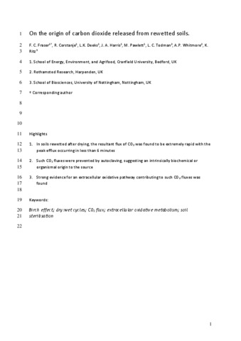 On the origin of carbon dioxide released from rewetted soils.