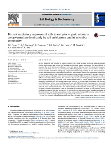 Distinct respiratory responses of soils to complex organic substrate are governed predominantly by soil architecture and its microbial community.