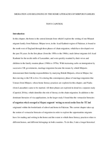 Migration and belonging in the home literacies of Mirpuri families.