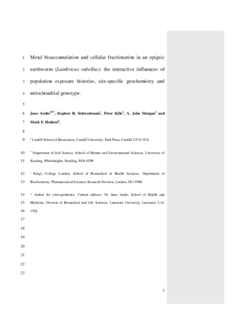| Uncontrolled Keywords | Earthworms; Pb & Zn; Subcellular fractionation; Field & lab exposures; Genotyping |