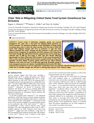 Mohareb, E. A. orcid id iconORCID: https://orcid.org/0000-0003-0344-2253, Heller, M. C. and Guthrie, P. M. (2018) Cities’ role in mitigating United States food system greenhouse gas emissions. Environmental Science and Technology, 52 (10). pp. 5545-5554. ISSN 1520-5851 doi: 10.1021/acs.est.7b02600