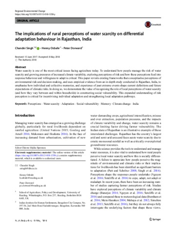 The implications of rural perceptions of water scarcity on differential adaptation behaviour in Rajasthan, India.