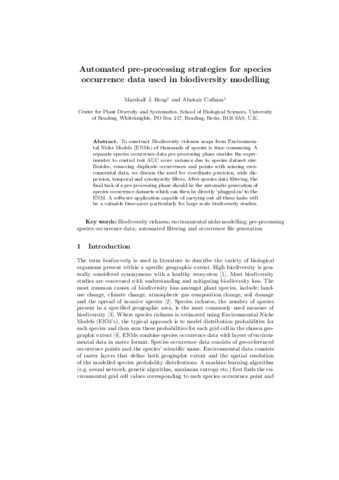 Automated pre-processing strategies for species occurrence data used in biodiversity modelling.